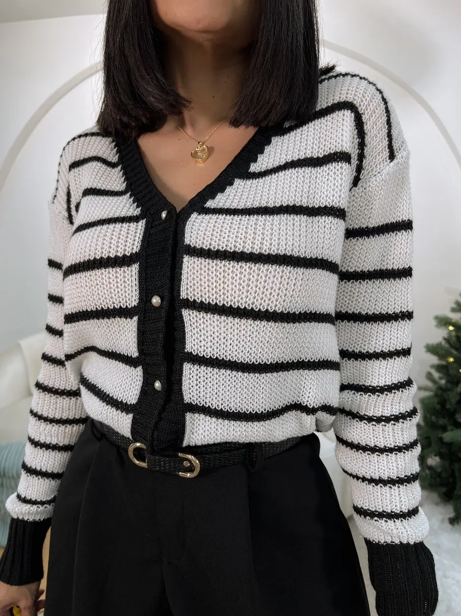 Suéter Blanco de Rayas Negras